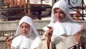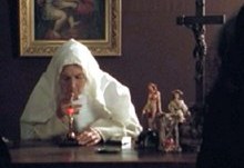 | Two more nuns come by - Sister Cigar and Sister Pipe - guess what they are smoking. (Remember Dr Jekyll and Dr Heckle in Alphaville? Just think of Rollin as the grade-z Godard.) Various other nuns can-can around the convent, or moon the vampire hunters, or break spontaneously into "Hooray for Captain Spaulding", thus confirming the insanity diagnosis. |