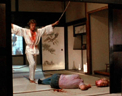 Well, you can guess that their marriage is going to get a little rocky after a few dozen exchanges like that. Of course, it will inevitably result in her sampling Alex's own bald-headed warrior. (Hey, how often do you get to see a 50ish Doug McClure naked?) Eventually it will result in a closing sequence which is a re-creation of the opening sequence, except that the fight is between Edward Albert and Doug McClure, who are in turn being possessed by the two Japanese ghost-warriors (right). This film has some very good moments, especially in the opening scene. It also has some beautiful photography. Unfortunately, it has two elements which kill it as a ghost story: