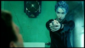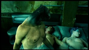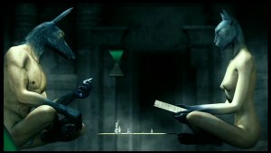 There is one important thing which really distinguishes it from Sin City: the director did not have Robert Rodriguez to help out as co-director. Unfortunately, that created a great gap between the technical proficiency of the two films. Immortal has some imaginative science fiction concepts that are inconsistently rendered into film. At its best, it looks like a more sophisticated version of Blade Runner (which was inspired and influenced by Bilal's art) rendered in a blue-gray palette. At its worst, it looks as bad as the cheesy 1980s video game, Dragon's Lair. The technical strong points are the cityscapes, which convey a poetic sense of human development gone somehow wrong, as if to show that all the technological advances of the future will be used to make the planet a claustrophobic, overly mechanistic, joyless place. When the film is able to show the humans acting in front of essentially motionless backgrounds, it accomplishes what it sets out to do. There are two areas, however, where the technology is simply too primitive to work: