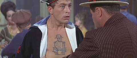 At any rate, he conceives of a scheme to solve his jealousy problem. Irma mentions that she once had a client who paid her enough to be his exclusive personal concubine. Lemmon thinks about it and concocts a perfect plan. He will disguise himself as a stuffy, impotent English gentleman who pays Irma enough to be his personal companion, and will work as many hours of manual labor as he needs to in order to finance this operation. Of course, this leaves him too tired to enjoy her company, which kind of defeats the whole purpose of the scheme.