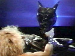 | Unfortunately the $53,000 budget could not allow for an actual actor to wear the Satan costume, so Triton/Thor actually does battle with the Satan costume itself, all the while pretending that it is fighting back, in the manner of Bela Lugosi battling the rubber octopus in Bride of the Monster. |